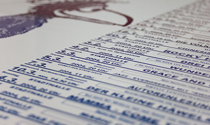 Hier werden z.B. Aufkleber, Plakatpapiere oder Displays bedruckt, aber auch der Bedruck von festen Platten wie Aluverbund oder Hartschaum ist möglich. Der Flachsiebdruck ist immer dann die richtige Wahl, wenn es um größere Auflagen geht oder wenn spezielle Farben zum Einsatz kommen sollen, die im Digitaldruck nicht möglich sind. Beispiele hierfür sind: Tagesleuchtfarben, nachleuchtende Farbe, Metallicfarben, Schäume oder auch Rubbellosfarbe etc..