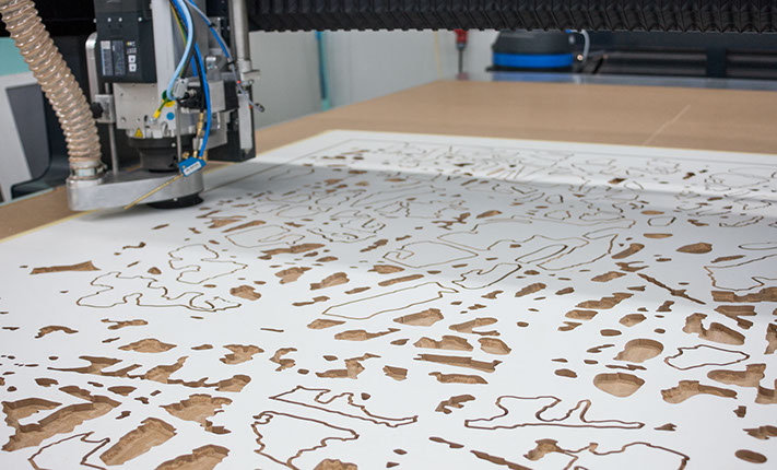Mit unserem CNC-Plattenfräser ist es möglich, eine Vielzahl an Materialien zu fräsen, gravieren und schneiden. Hierbei können Plattenformate von 200 x 300 cm millimetergenau verarbeitet werden. Die Anwendungsbereiche liegen in der Innen- und Außenwerbung, in der Messe- und Ladengestaltung, sowie in der Anfertigung von Dekorationen und Bauteilen, sowie in der digitalen Stanzung von Druckerzeugnissen.